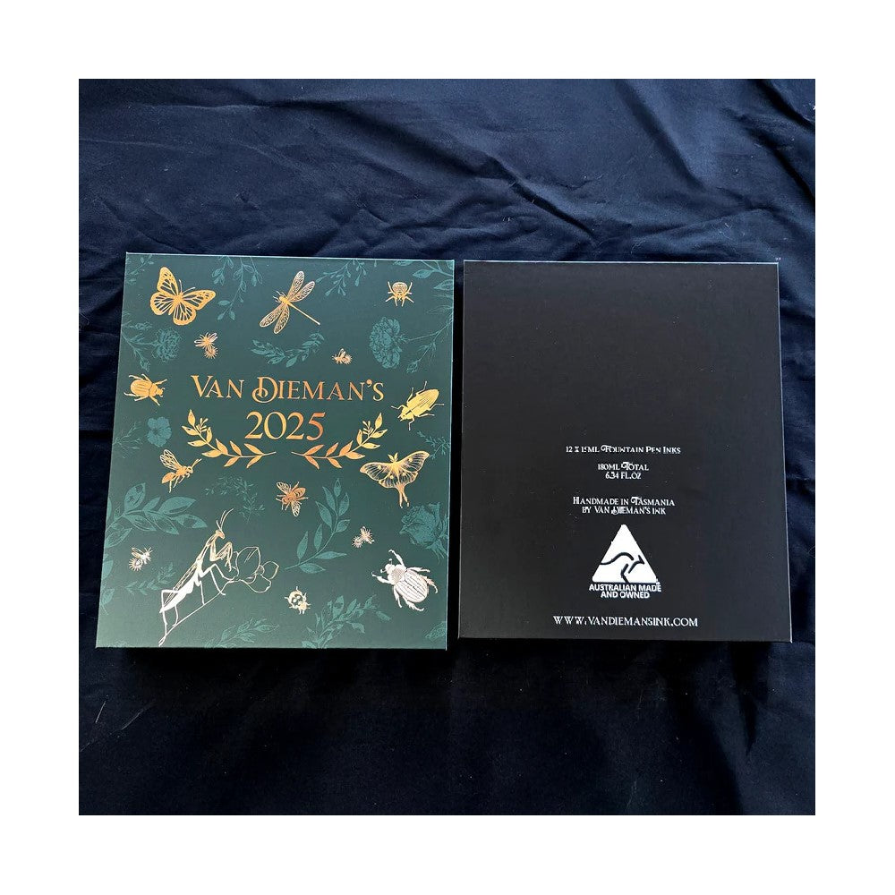 The Van Dieman’s 2025 Boxed Collection is the most ambitious, luxurious, and art driven release we have ever created. This year’s theme celebrates the miniature marvels of the natural world, bringing together twelve handcrafted fountain pen inks inspired by insects that shimmer, soar, hide, and glow. Every colour is paired with its own original artwork, each one designed in Tasmania and reproduced in stunning clarity within the included premium booklet.